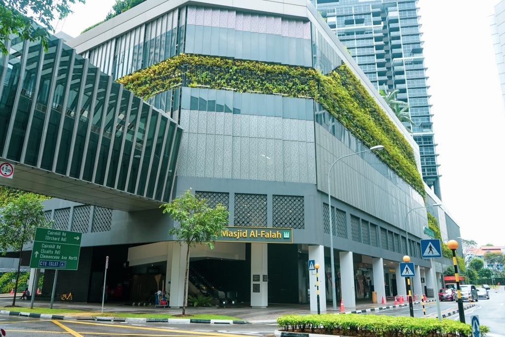 Dibina pada tahun 1987 di tingkat bawah Cairnhill Place, masjid ini merupakan satu-satunya rumah ibadat di Orchard Road, pusat beli-belah bandar utama Singapura. Ia menjejaki akarnya kembali ke bekas Taman Masjid Angullia di Taman Angullia.